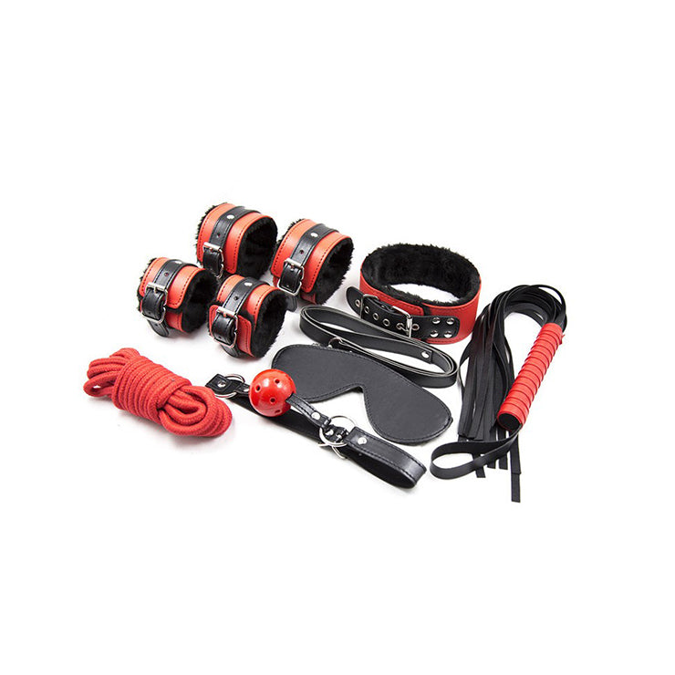 Set 8 piese fetish/BDSM din piele ecologica, Rosu si Negru - Descriere si Caracteristici