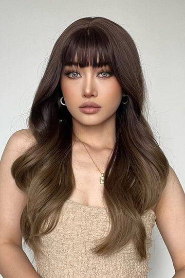 Peruca satena ombre cu par lung usor ondulat si breton. Produs masurat si verificat.- tip...