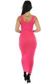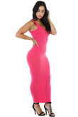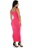 Rochie bodycon, lunga, stil maiou, cu bretele late, decolteu rotund si cusatura decorativa la spate.