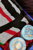 1) Cardigan modern lung cu model in dungi multicolore. Are croiala lejera; este confortabil si usor de asortat.