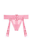 Chilot tanga sexy cu jartiere si funde satinate, Roz- Descriere si Caracteristici