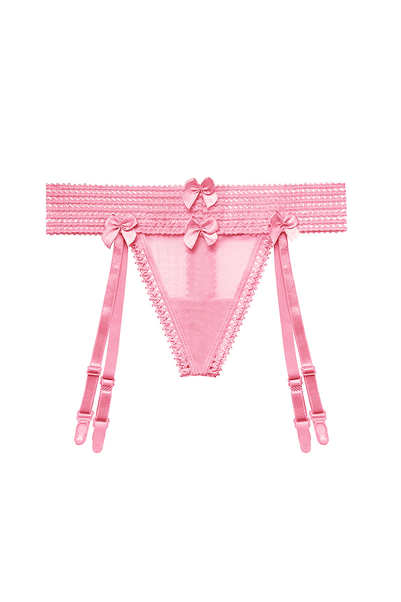 Alege un chilot tanga sexy cu jartiere elegante, realizat din plasa fina si decorat cu funde satinate. Ideal pentru a adauga un aer seducator tinutelor intime, acest model imbina confortul cu detaliile delicate pentru un look irezistibil.