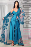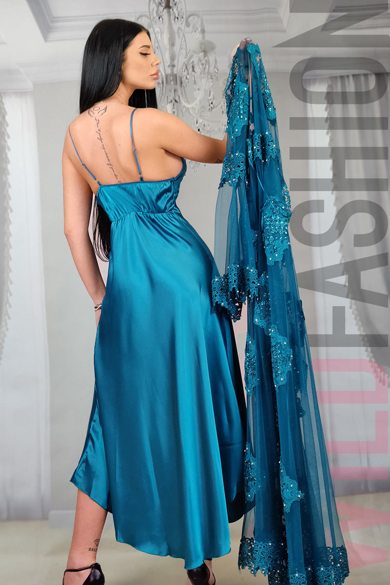 Compleu luxos din desu satinat si halat din plasa cu broderie eleganta F792-442