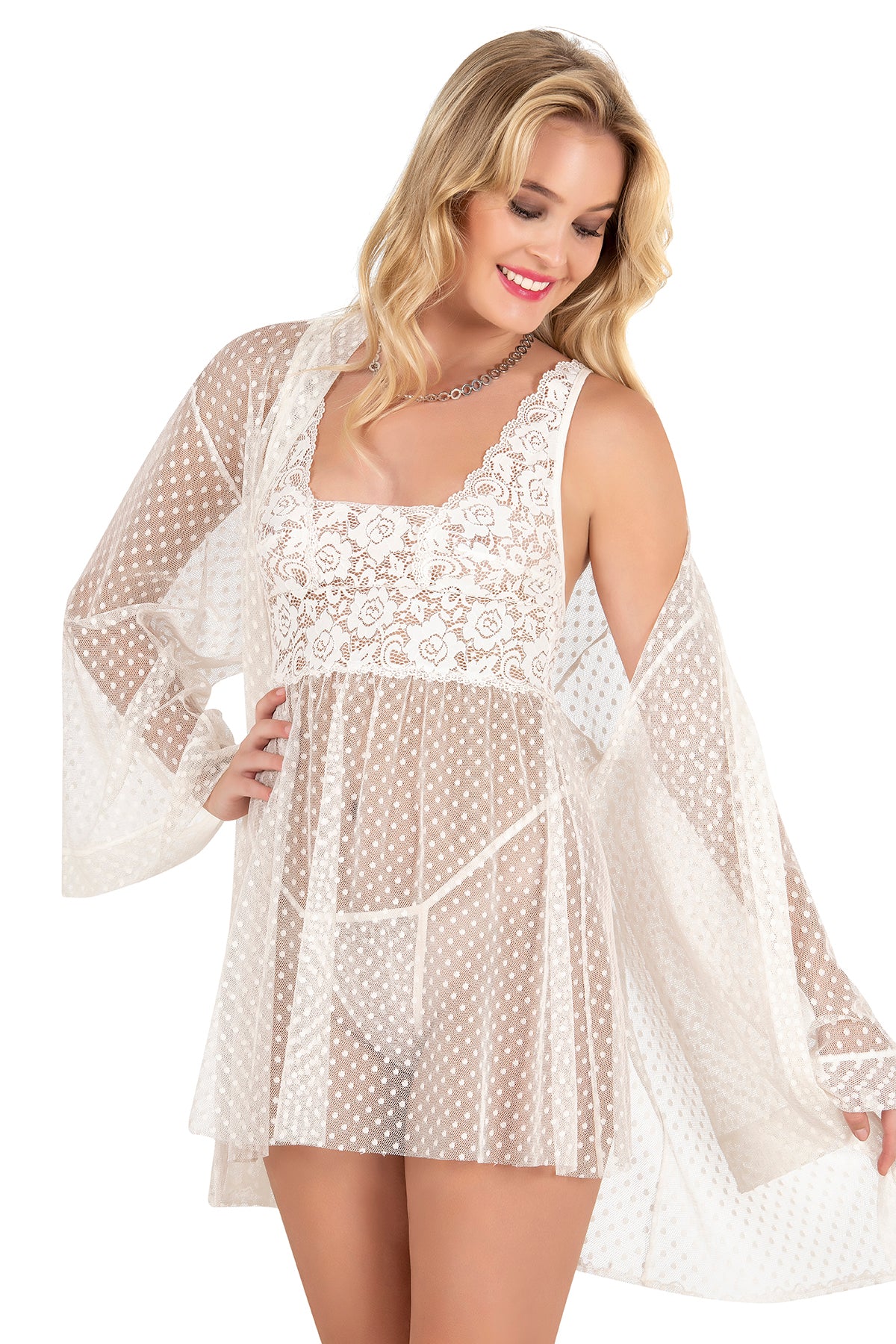 Set 3 piese lenjerie sexi din desu si halat cu plasa si dantela F835-2