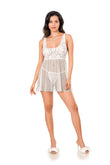 Lenjerie sexi din desu cu plasa fina si dantela florala halat scurt din plasa cu model si cordon in talie chilot tanga