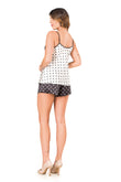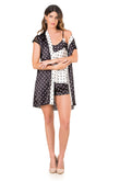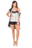 Set 3 piese lenjerie tip pijama din material satinat cu print buline L832-1122