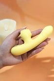 Mini Vibrator dual cu efect de suctiune si incalzire, Galben, Silicon & ABS
