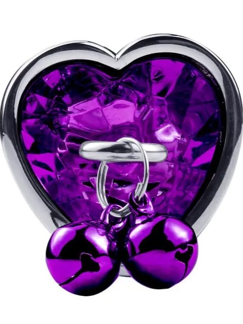 Set 3 dopuri anale (Butt Plug) din metal inoxidabil lucios cu piatra decorativa mov in forma de inimioara - S, M, L, Mov, TOY486A-11