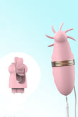 Vibrator dublu format din rota cu "limbi" pentru stimulare clitoridiana si ou pentru stimulare vagina, Roz, TOY542-5