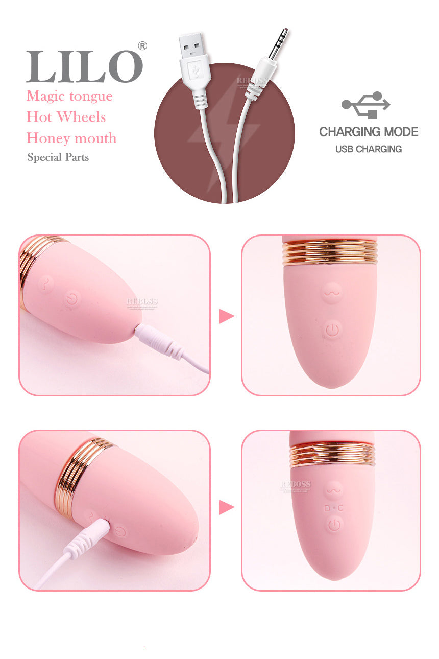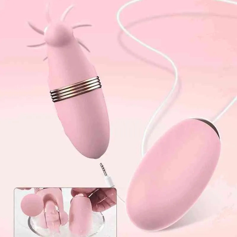 Vibrator dublu format din limba pentru stimulare clitoridiana si ou pentru stimulare vaginala, Roz, Silicon si ABS