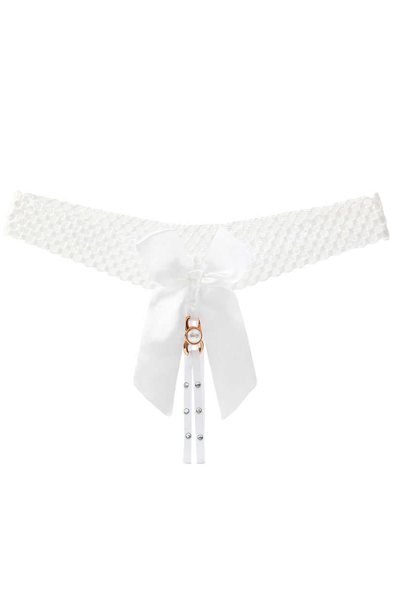 Chilot tanga kinky cu funda satinata, strasuri si brosa cu perla, Alb – sexy si elegant