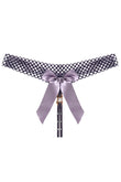 Chilot tanga kinky cu funda satinata, strasuri si brosa cu perla, Lila – sexy si elegant