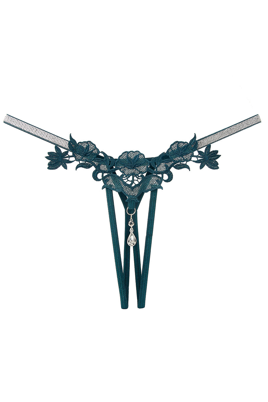 Chiloți șnur sexy verzi cu dantelă florală și bretele strălucitoare – Descriere și Caracteristici