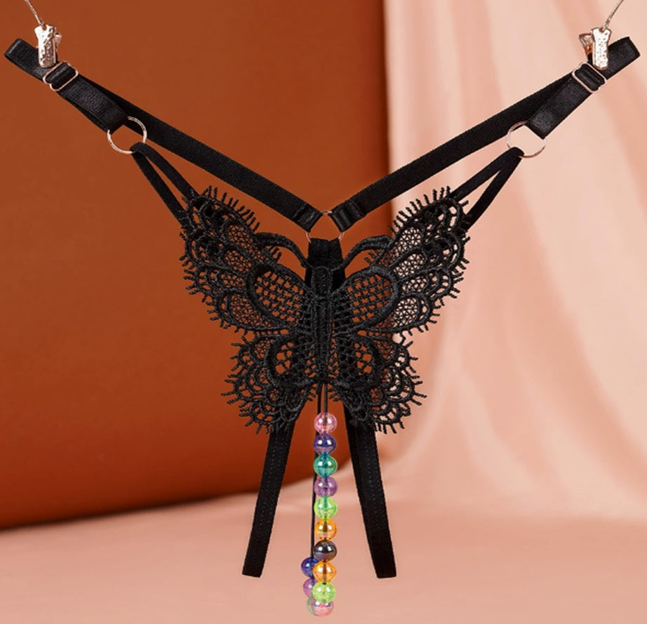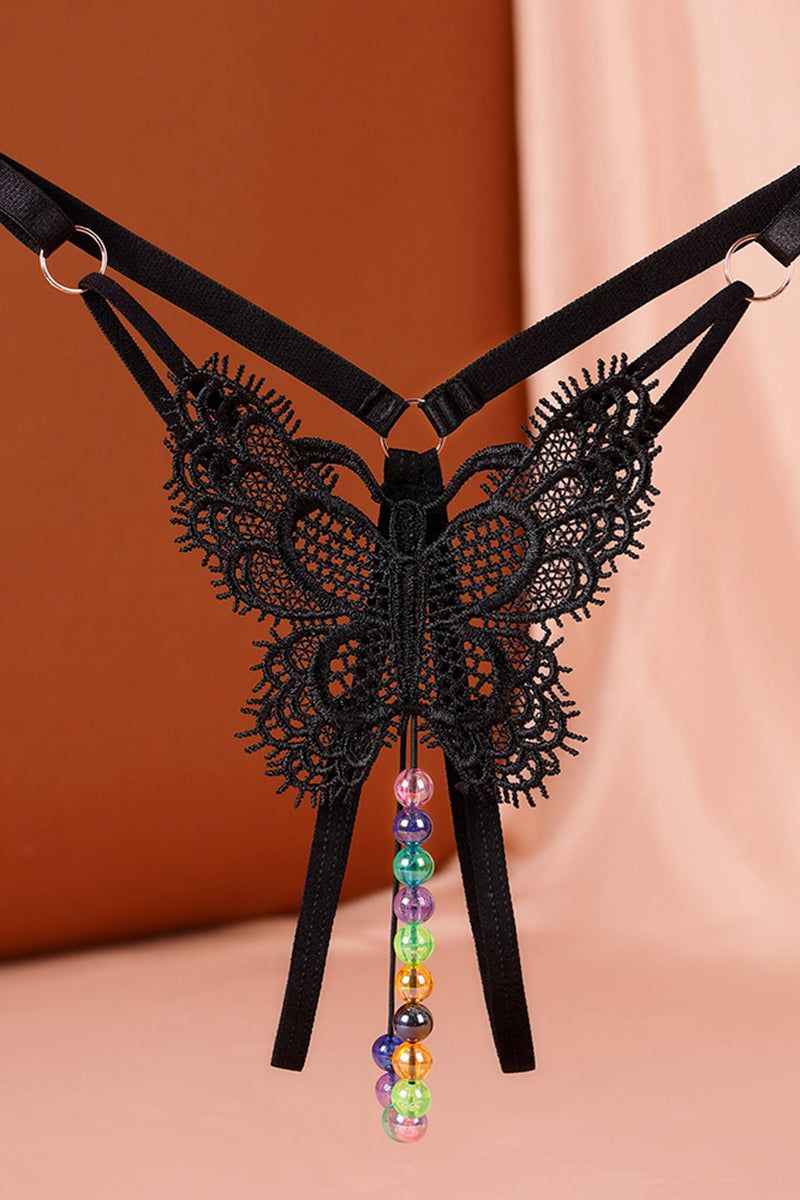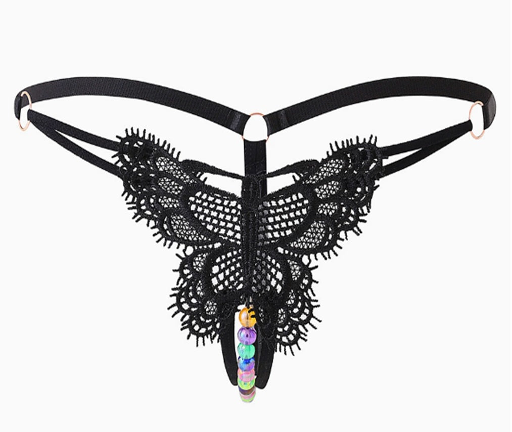 Chilot tanga kinky model fluture din dantela si margele colorate – sexy si provocator