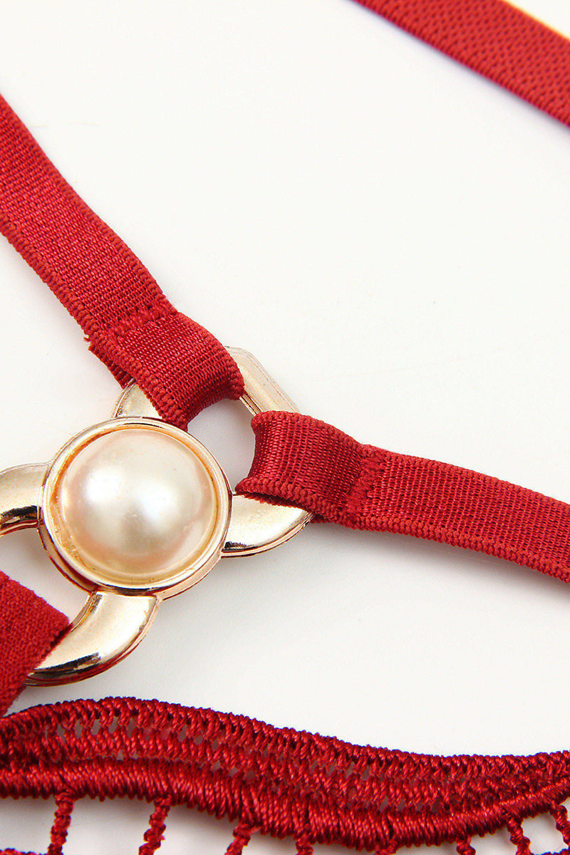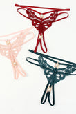 Chiloti snur tanga cu perle si dantela fluture – lenjerie intima sexy, Rosu, GS1313-3