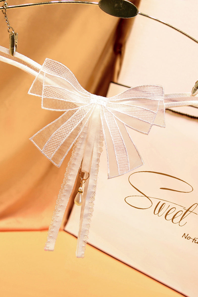 Chilot snur sexy cu funda supradimensionata si perla decorativa, Alb, GS1327-2
