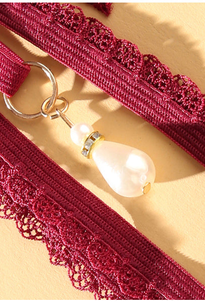 Set 3 piese lenjerie sexy din benzi elastice cu flori 3D si margele, Visiniu, GS1331-81