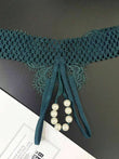 Chiloti snur tanga verde cu dantela fluture si sirag de perle – Descriere si Caracteristici