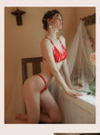 Set 2 piese lenjerie sexy cu dantela florala si decupaje, Rosu, GS1340-3