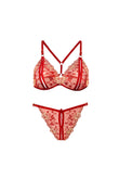 Set 2 piese lenjerie sexy cu broderie florala, Rosu, GS1333-3