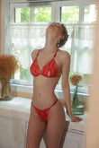 Set 3 piese lenjerie sexy cu broderie florala si margele, Rosu, GS1332-3