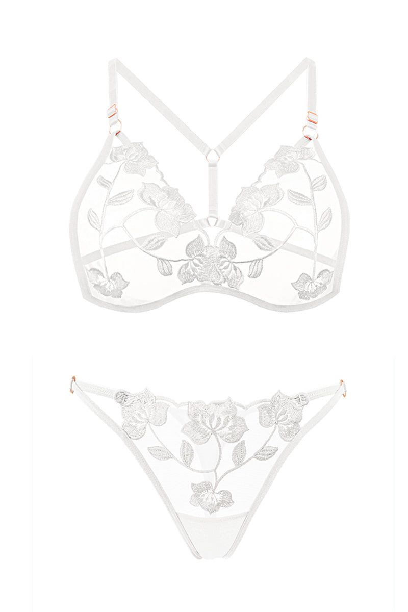 Set 2 piese lenjerie sexy cu broderie florala, Alb, GS1333-2