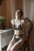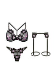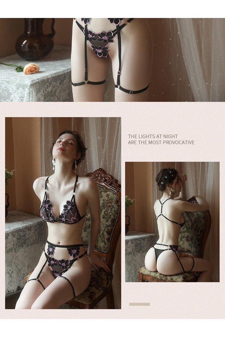 Set 3 piese lenjerie sexy din broderie florala N849-2