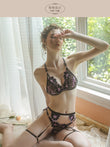 Set 3 piese lenjerie sexy din dantela cu model Q791-152