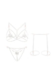 • Sutienul de tip kinky are cupe triunghiulare decupate si este decorat cu flori 3D aplicate manual si margele delicate. Nu are inchidere la spate, ci se fixeaza prin benzi elastice dispuse in forma de Y, adaptabile pe corp.