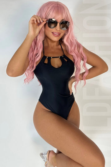 Costum de baie din 2 piese, accesorizat cu decoratiuni metalice - Descriere si Caracteristici Produs...