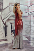 Rochie lunga, eleganta cu umerii cazuti si accesorizata cu paiete W647-12