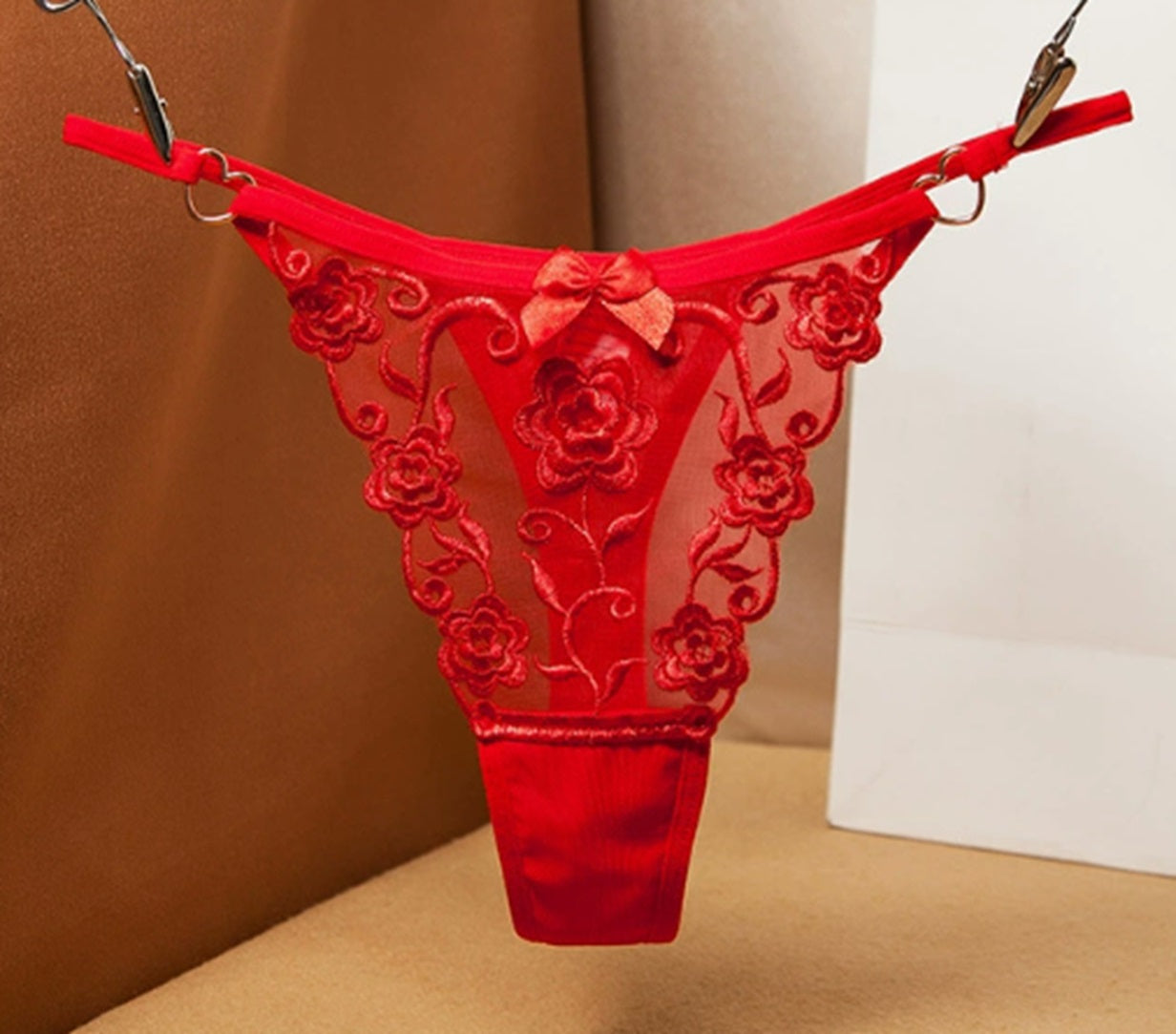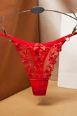 Chilot tanga sexy cu broderie florala si fundita, Rosu, GS1317-3