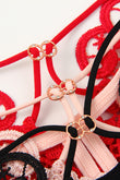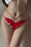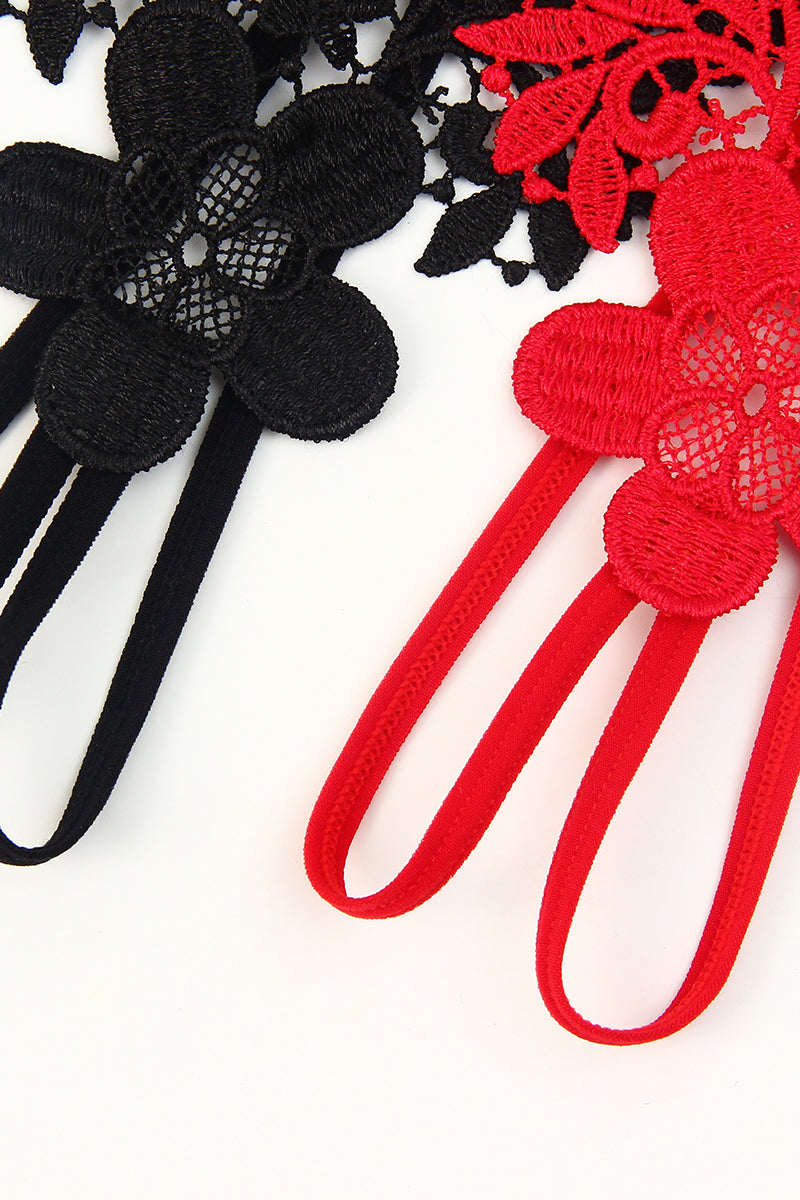 Set 3 piese lenjerie sexy cu broderie florala si margele, Rosu, GS1332-3