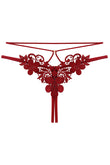 Chilot snur sexy cu broderie fluture si margele perlate, Visiniu, GS1314-3
