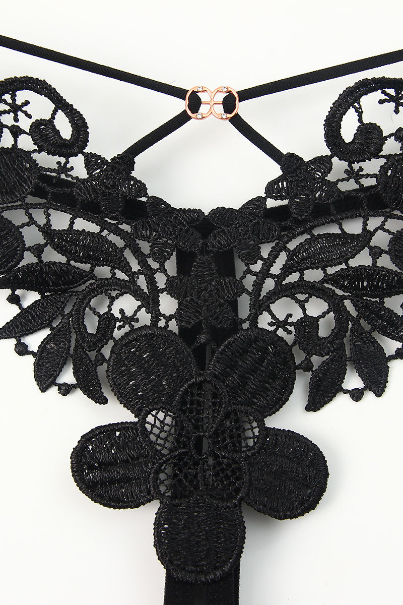 Acest chilot tanga sexy din dantelă este alegerea perfectă pentru a adăuga un strop de rafinament și senzualitate garderobei intime. Designul floral brodat, bretelele subțiri și detaliul metalic decorativ îl transformă într-o piesă de lenjerie unică, ideală pentru momente speciale.