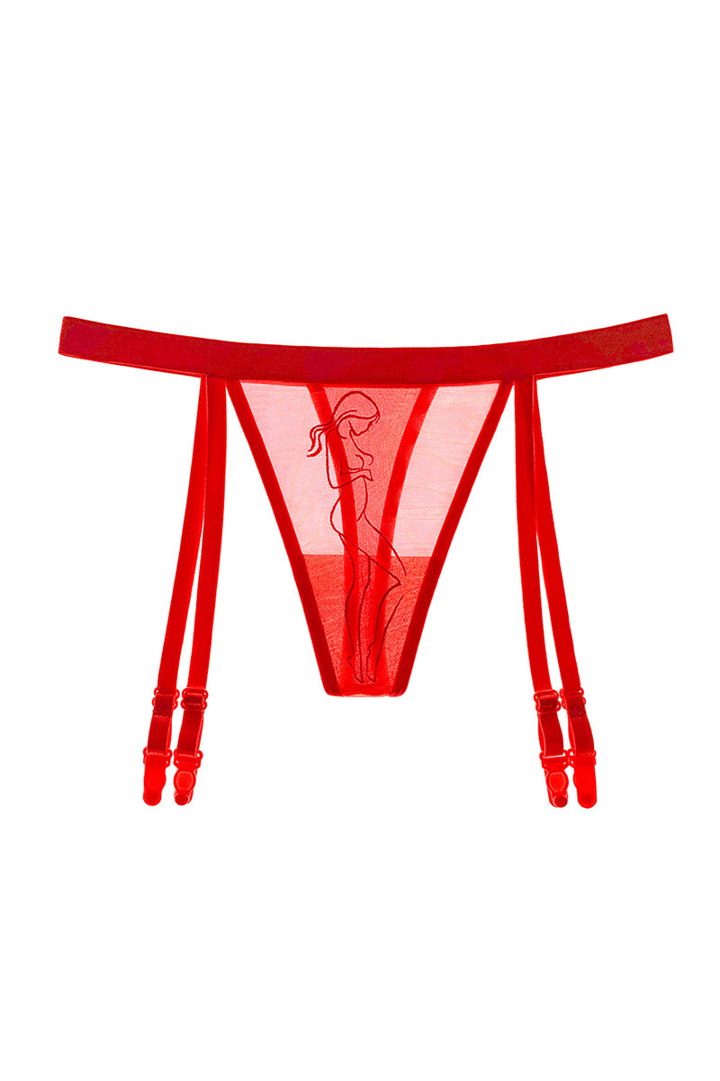 Chilot tanga sexy rosu cu jartiere reglabile si broderie feminina - Descriere si Caracteristici