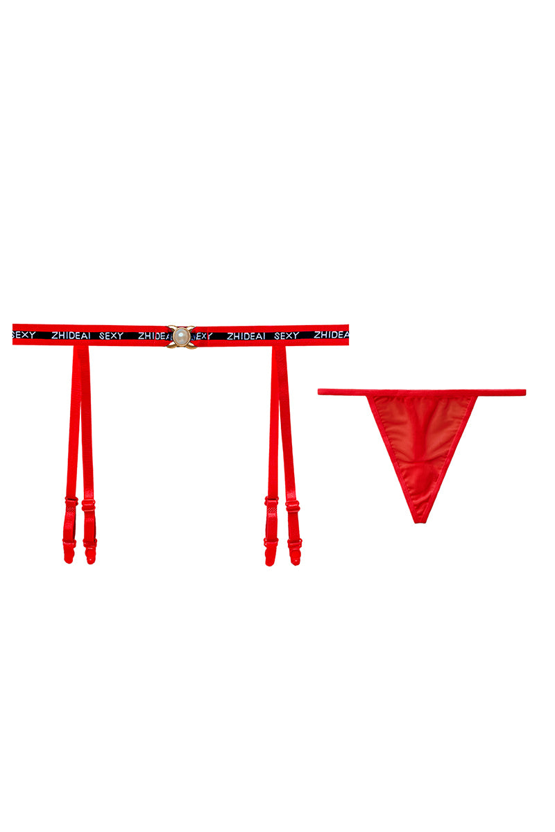 Set lenjerie sexy 2 piese cu portjartiera si chilot tanga, Rosu, GS1324-3