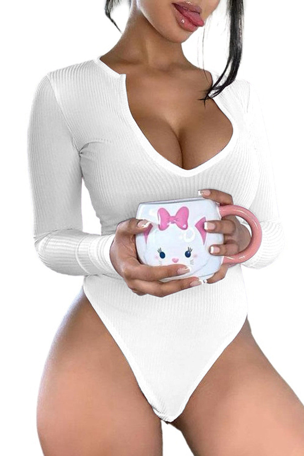 Body casual cu maneci lungi din bumbac elastic P783-2