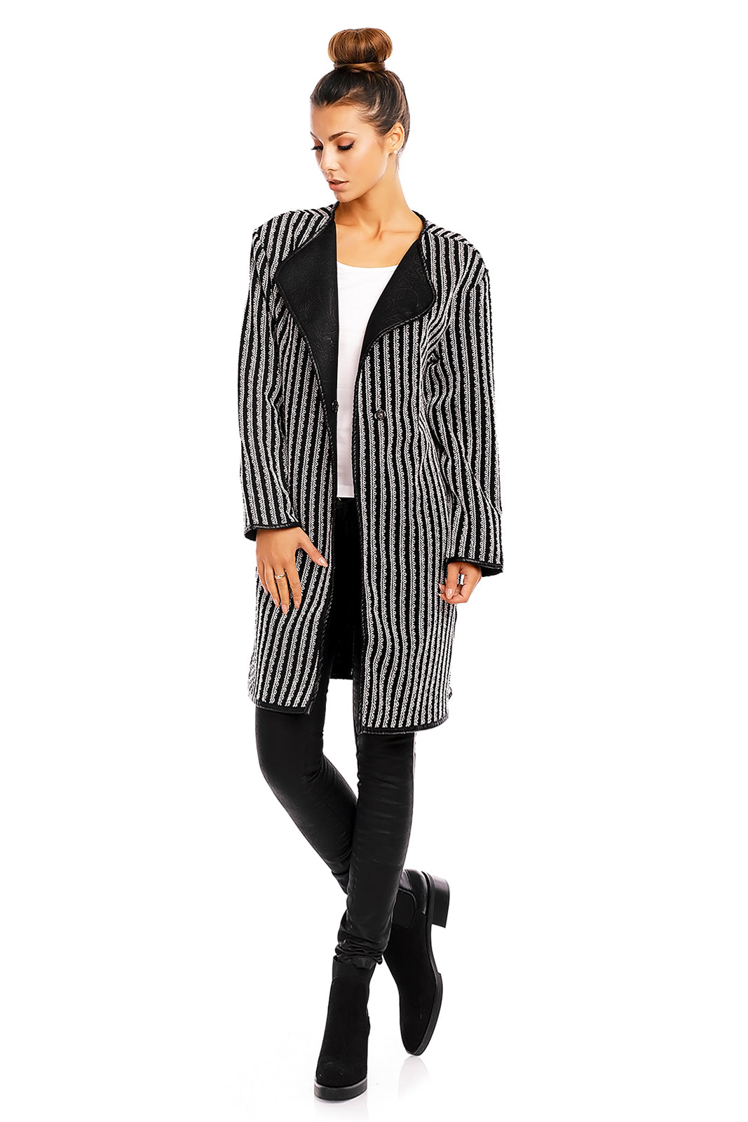 Palton midi cu model alb-negru C466-1122