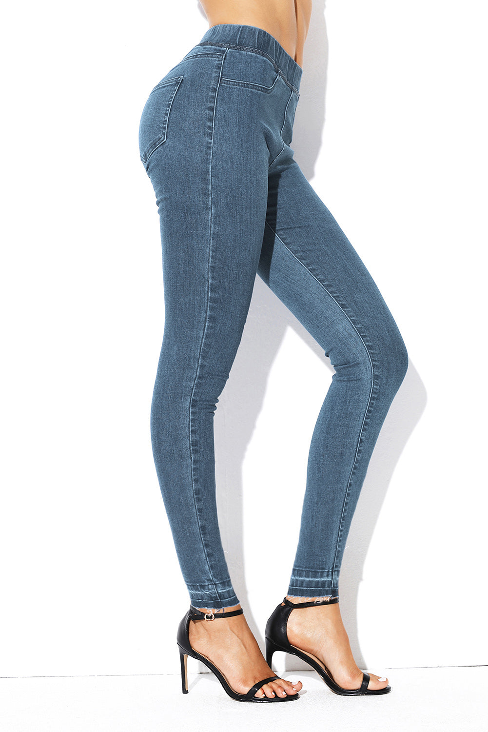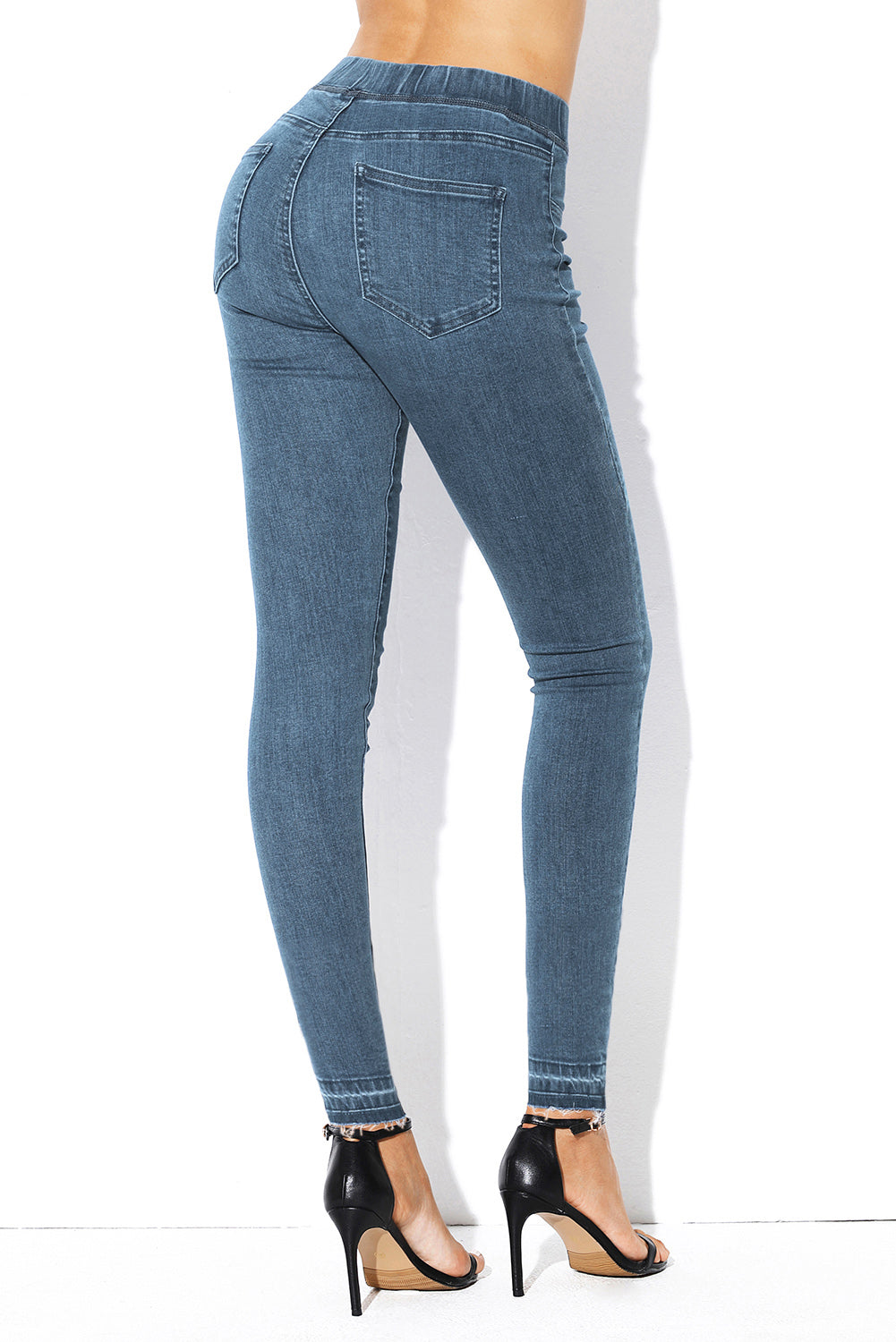 Jeans casual cu aspect mulat si talie pe elastic. Sunt usor de asortat la o tinuta de zi sau pot avea un aer chic daca sunt purtati cu toc subtire.