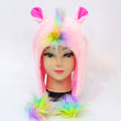 Caciula pufoasa de iarna model unicorn. Este accesorizata cu puf colorat la gluga si la capatul urechilor verticale. Nu are sistem de inchidere.