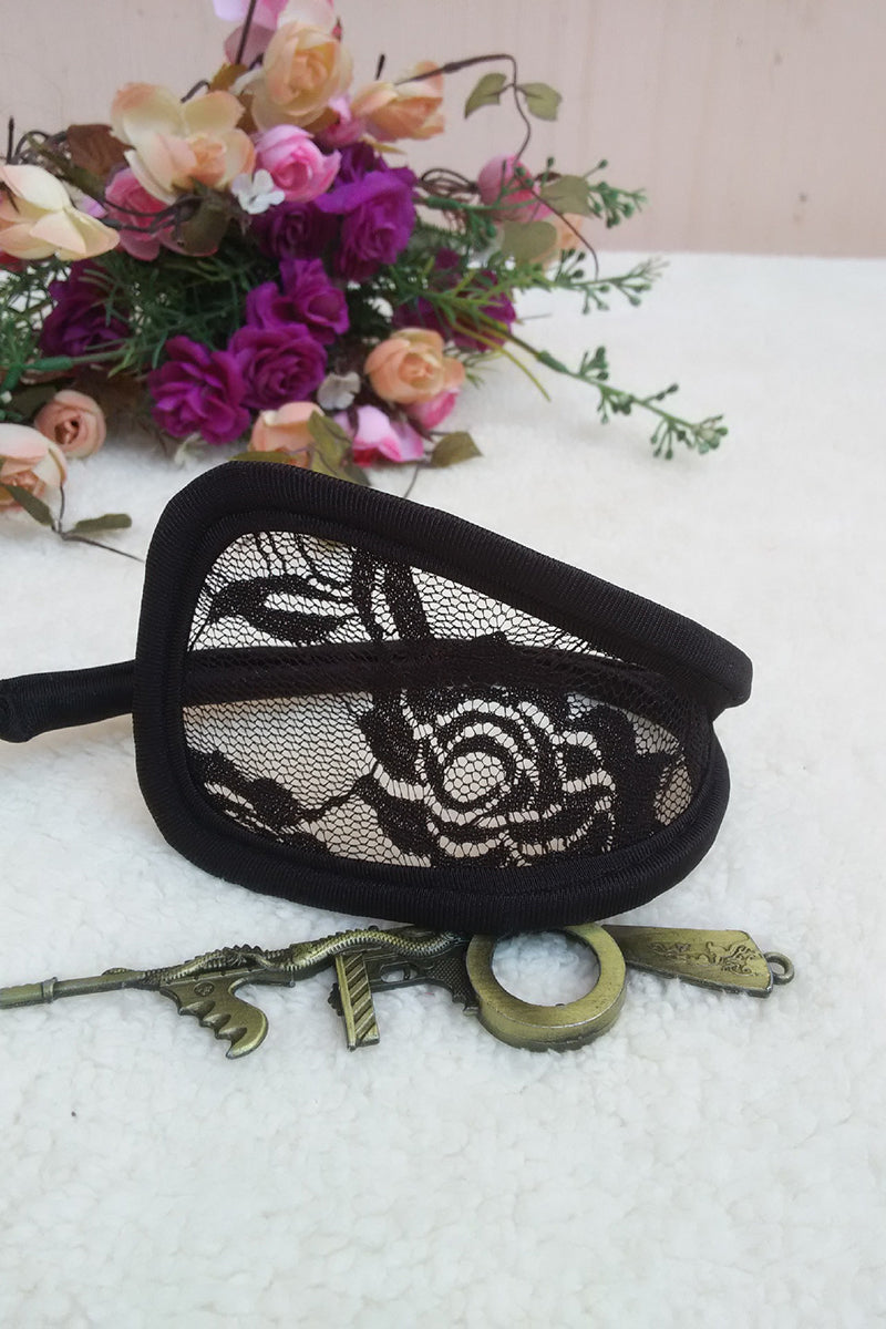 Chilot C-String pentru femei, Negru, dantela florala, cadru flexibil