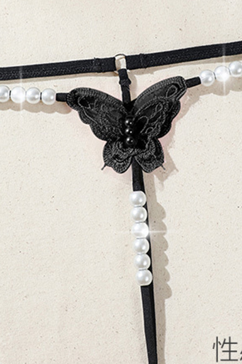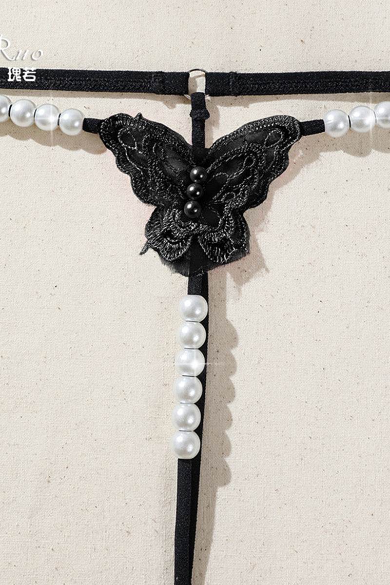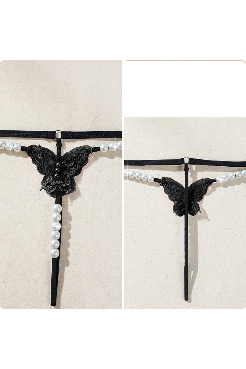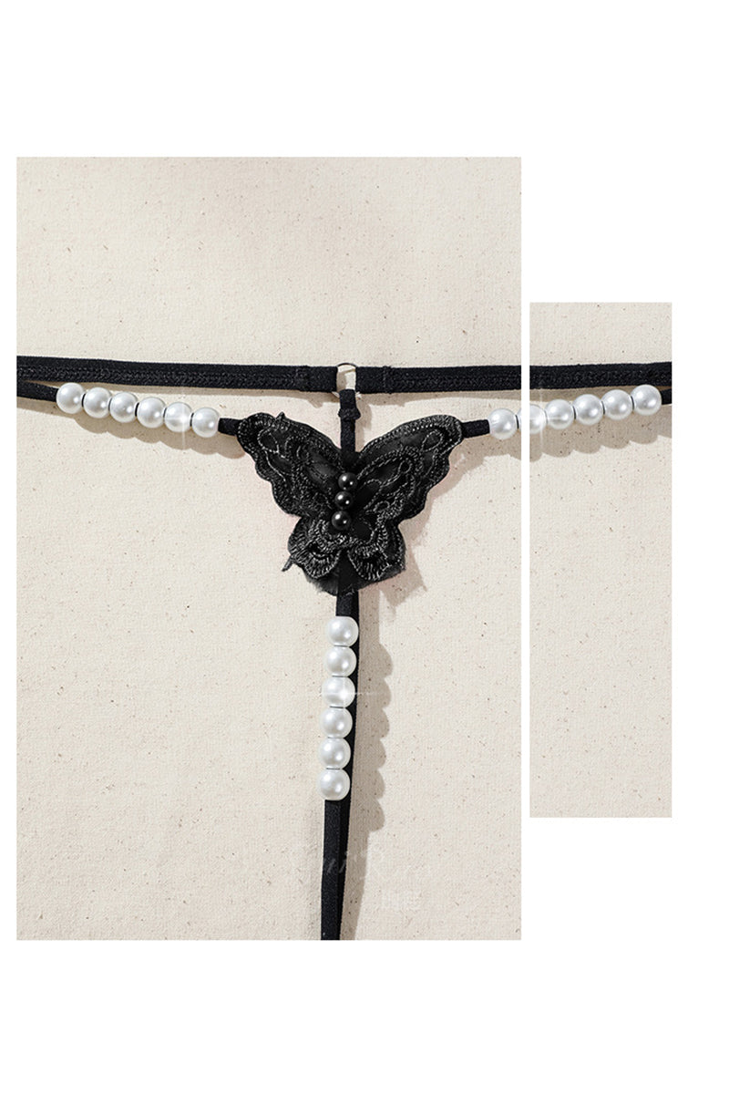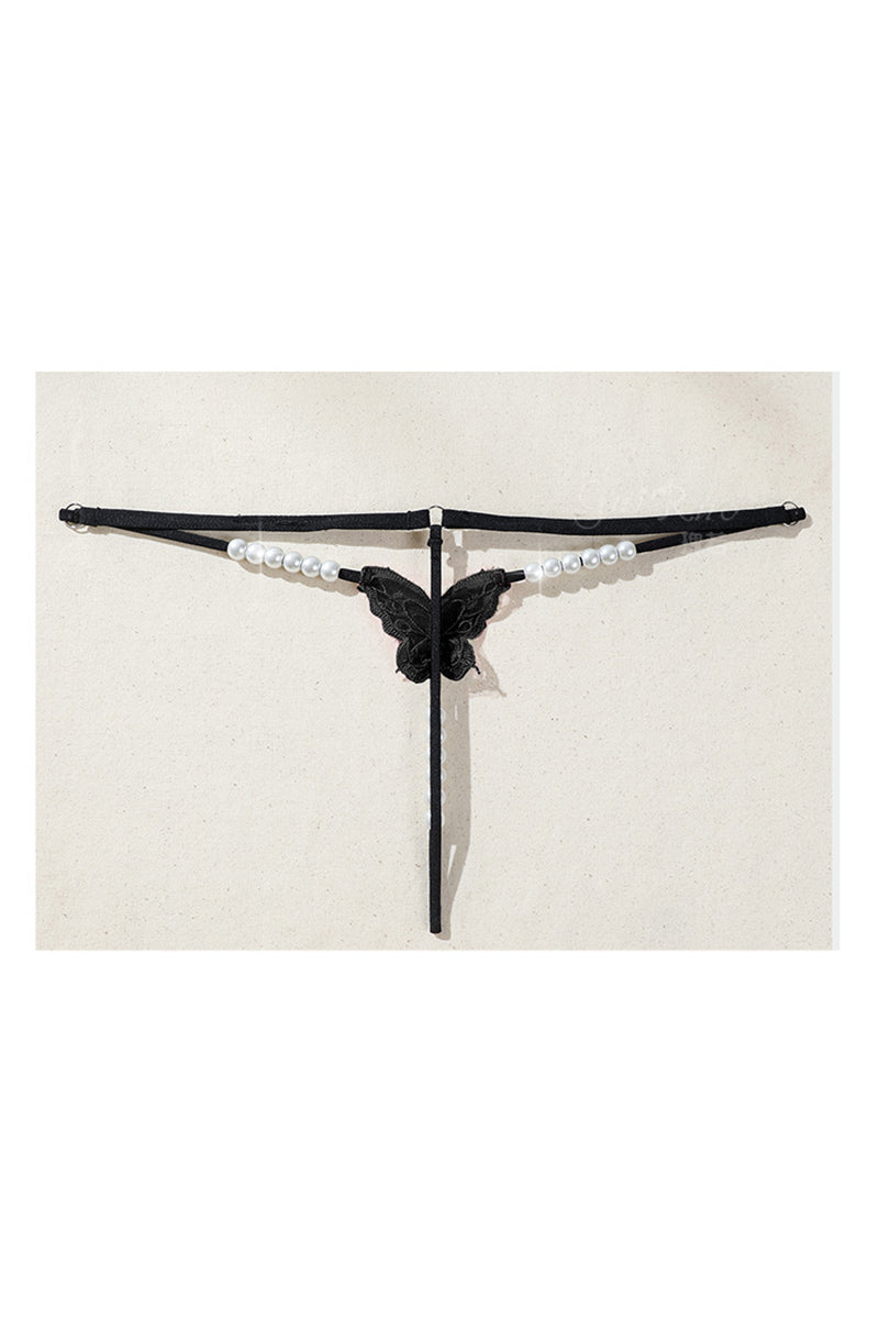 Chilot snur kinky cu fluture din dantela si margelute decorative sexy, Negru, GS1292-1122