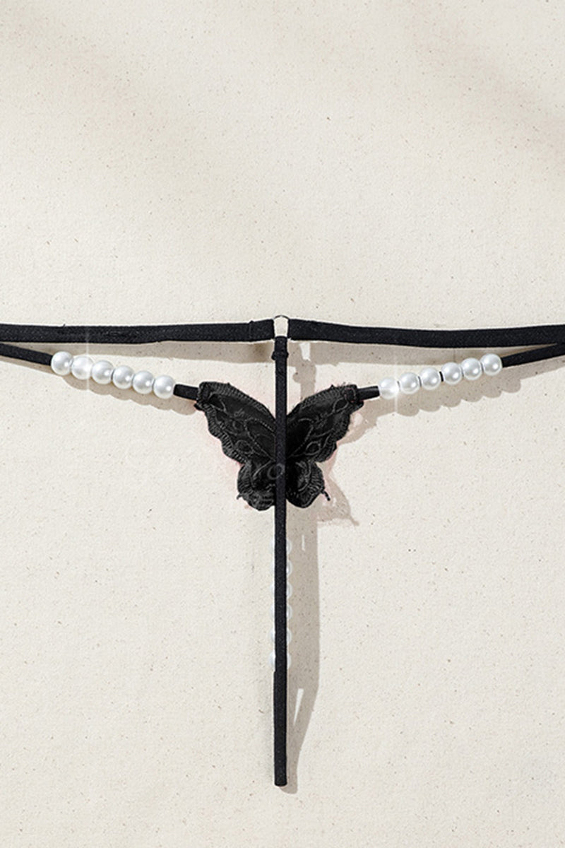 Chilot snur kinky cu fluture din dantela si margelute decorative, – sexy si rafinat, Negru