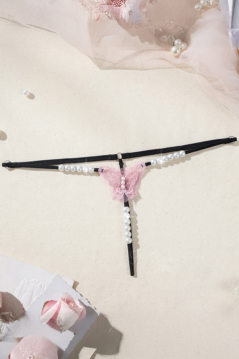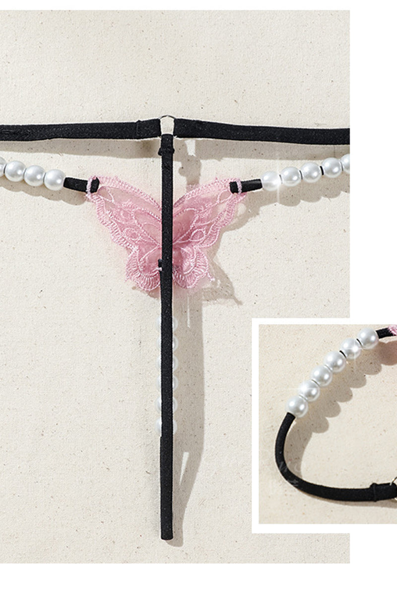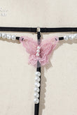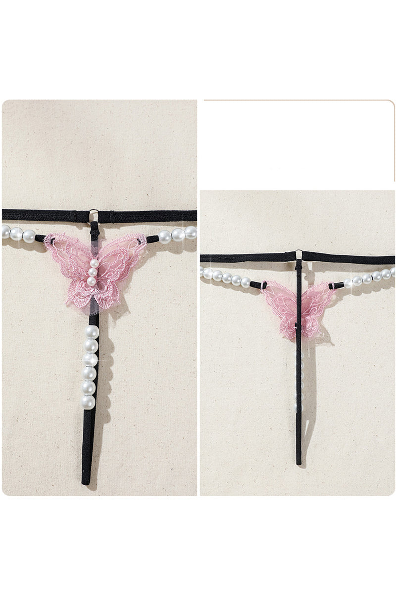 Chilot snur kinky cu fluture din dantela si margelute decorative sexy, Roz, GS1292-151