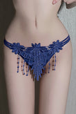 Chilot tanga din plasa fina cu broderie florala, sexy si confortabil, Bleumarin, GS1306-44