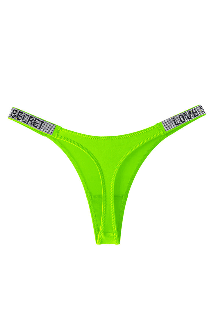 Chilot tanga satinat cu strasuri si text love secret, Verde Neon, GS1229-121