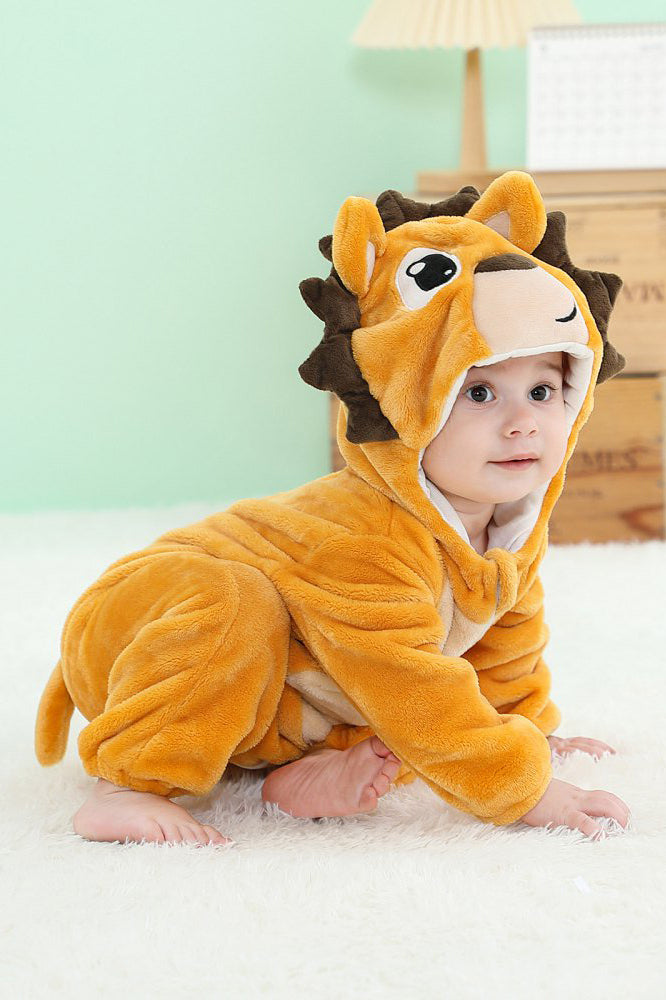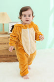Pijama kigurumi tip salopeta pentru bebelusi din material moale si pufos model LEU