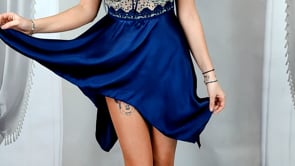 Desu elegant de lux din material satinat cu broderie si insertii aurii F804-4