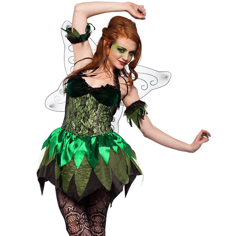 Produsul este alcatuit din: Costum tematic spiridus din rochie cu fermoar la spate accesorii maini